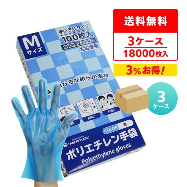 CPE ポリエチレン手袋 Mサイズ 青 約24x28.3cm 100枚x60小箱x3箱 HGCBM-100-3 外エンボス加工 食品衛生法適合商品 左右兼用 使い捨て手袋 衛生手袋 業務用 飲食店 食品調理 介護 清掃 園芸 サンキョウプラテック 送料無料