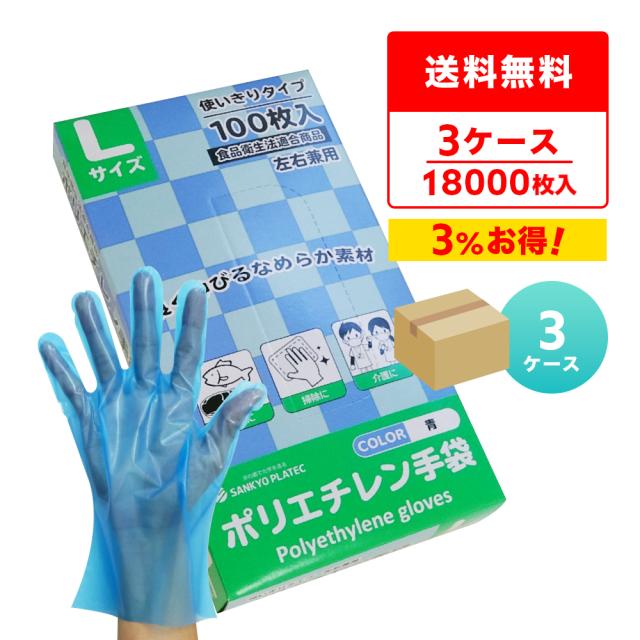 CPE ポリエチレン手袋 Lサイズ 青 約25.5x28.5cm 100枚x60小箱x3箱 HGCBL-100-3 外エンボス加工 食品衛生法適合商品 左右兼用 使い捨て手袋 衛生手袋 業務用 飲食店 食品調理 介護 清掃 園芸 サンキョウプラテック 送料無料