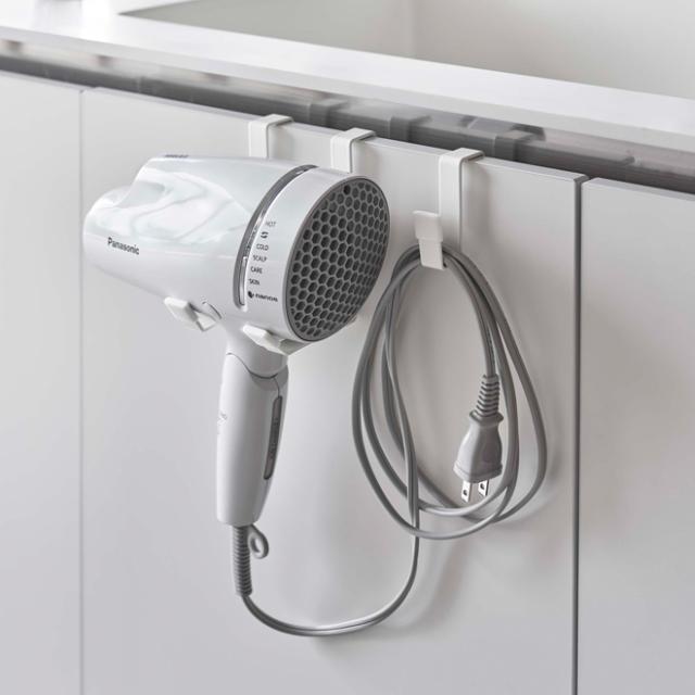 tower(タワー) ドライヤーハンガー洗面扉に引っ掛けるだけの簡単設置で、ドライヤーの出し入れも片手で楽に行えます。