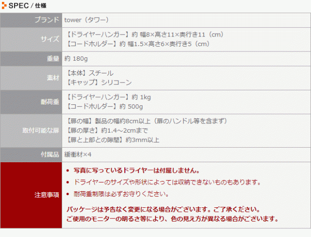 ドライヤーホルダー ドライヤーハンガー 洗面扉 収納 tower タワー おしゃれ シンプル