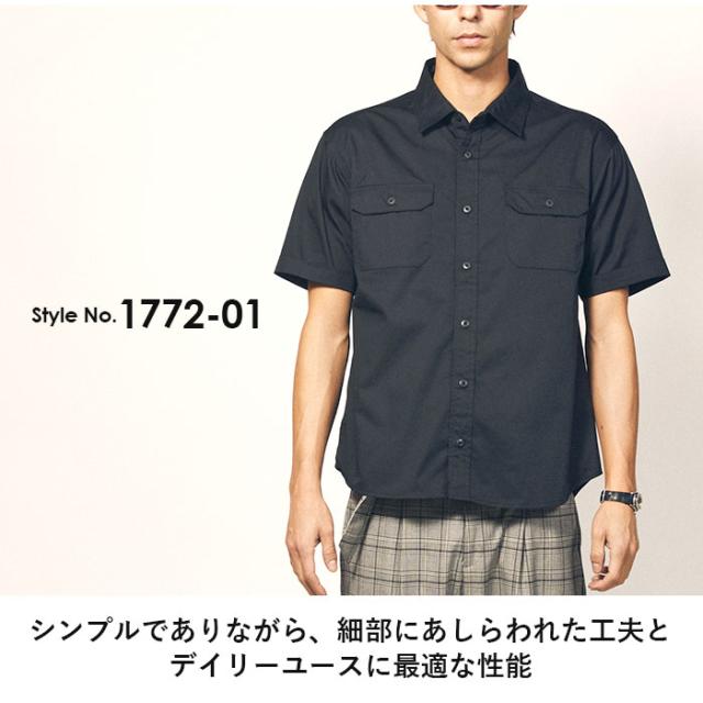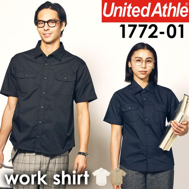ユナイテッドアスレ ワークシャツ 通販 半袖 アメカジ シャツ メンズ おしゃれ 作業着 シンプル 無地 ペン差し付き フラップポケット United Athle Works ユナイテッドアスレワークス T/Cワークシャツ 1772-01 カジュアルシャツ トップス メンズファッション