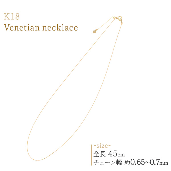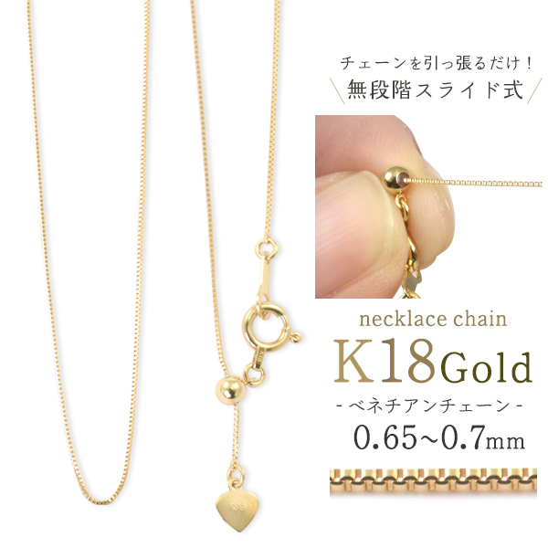 K18 ネックレス チェーン 45cm ベネチアンチェーン 幅0.65〜0.7mm 金18 無段階スライド式 ネックレスチェーン チェーンのみ アクセパーツ k18 アクセサリーパーツ 18k 素材 手作り アクセサリー 手芸 ペンダント お洒落 エレガント 上品 修理 修復 リメイク