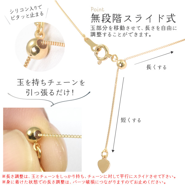 ※玉部分に付属する金具を持って引っ張ったりしないでください。破損する恐れがありますので取り扱いには十分ご注意ください。※商品を身に着けた状態での長さ調整は、パーツ破損につながりますのでお止めください。※誤飲の危険があるため、小さなお子様には与えないでください。万一誤飲した場合は、ただちに医師の診断を受けてください。※小さなお子様の手に届かない場所に保管してください。※K18はデリケートな素材です。加工や修理時の衝撃などで変形してしまう場合がございますので、取り扱いには十分ご注意下さい。※お届け後の修理は有償で承っております。返送手続き等の前にご購入店舗までお問い合わせください。※大量注文の場合は事前にお問い合わせください。
