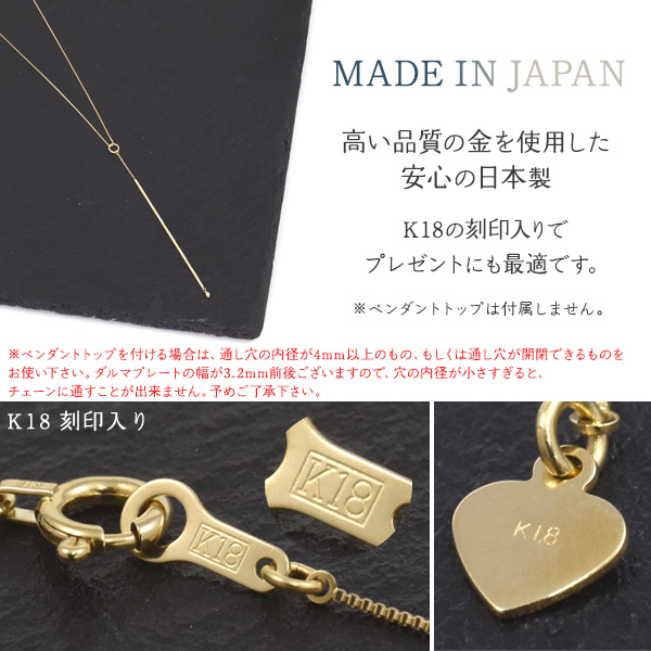 留め具もチェーンも18金で仕上げた日本製のチェーンネックレス。