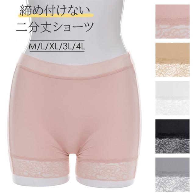 ショーツ 二分丈 レディース サラサラ生地 深履き レース 食い込まない ライン出にくい 1枚穿き M L XL 3L 4L s716 pc3