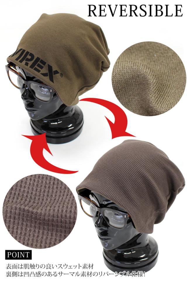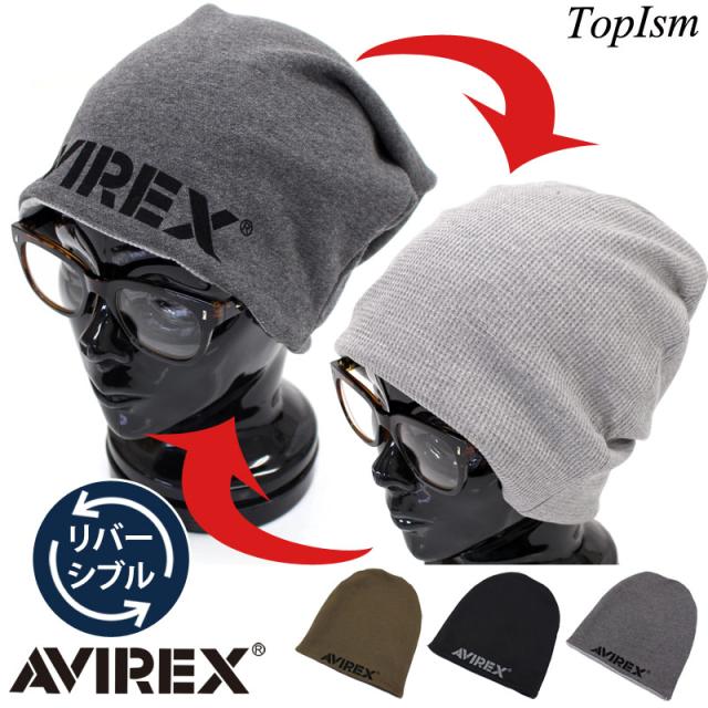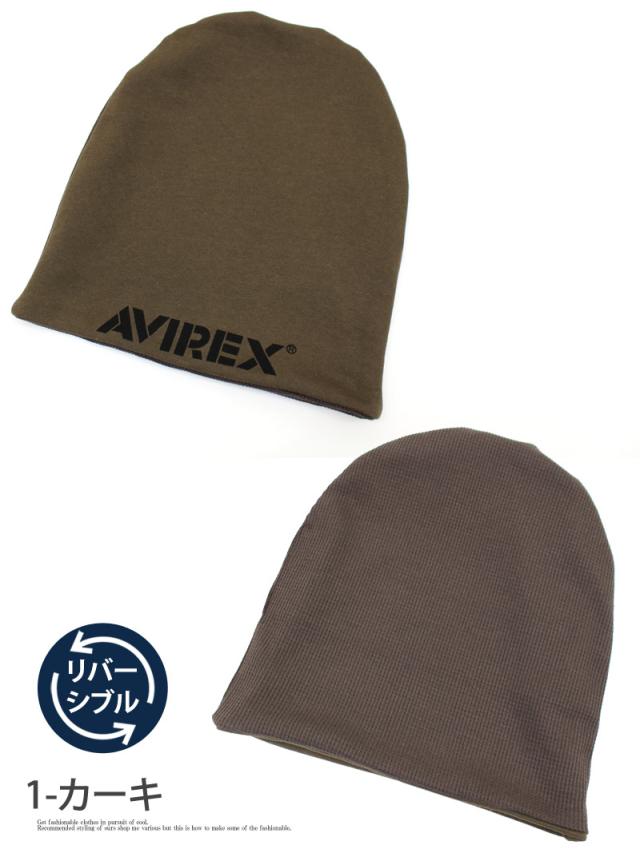 AVIREX アビレックス リバーシブル スウェットキャップ アウトドア ブラック カーキ グレー 男女兼用 送料無料 ゆうパケ