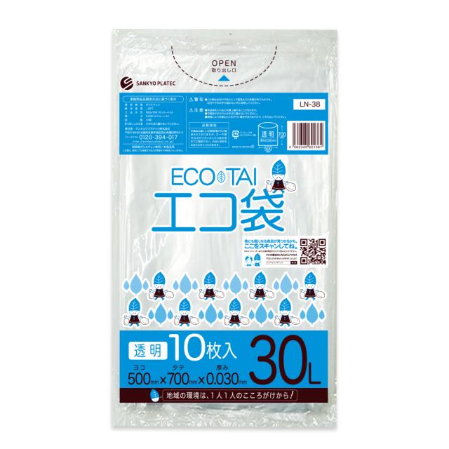 【バラ販売】LN-38bara ポリ袋 30リットル 0.030mm厚 透明 10枚 / ゴミ袋 ごみ袋