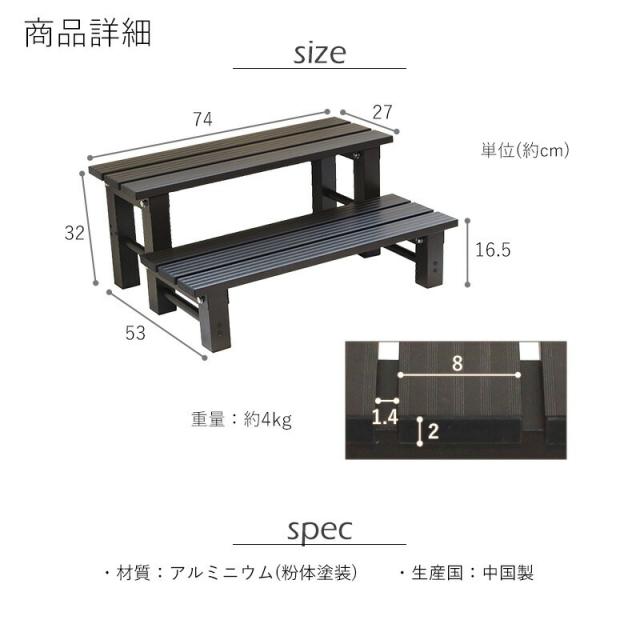 アルミステップ おしゃれ 2段 縁側 ステップ台 階段 庭 アルミデッキ アルミ縁台 DIY デッキセット用 軽量 縁台 段差解消 踏み台 収納 玄関 ベンチ 介護 介助 セーフティステップ