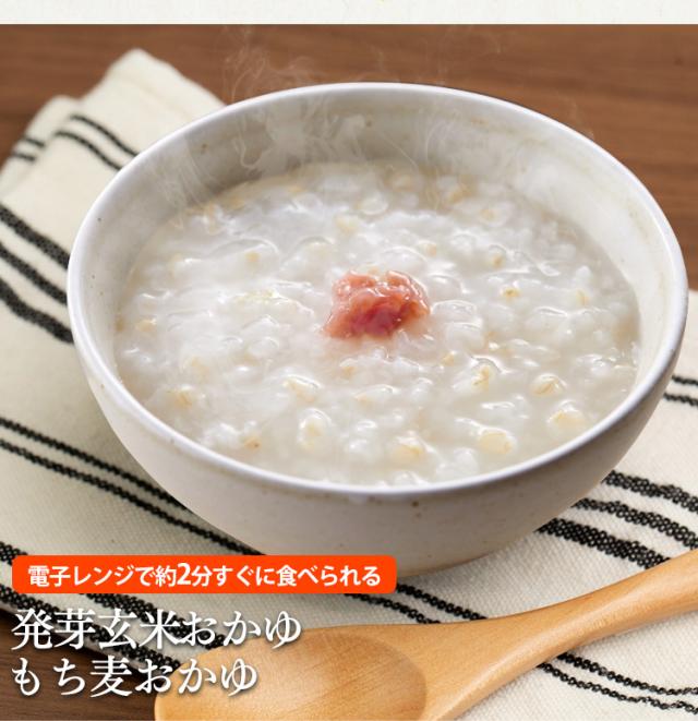 魚沼産コシヒカリを使用した発芽玄米おかゆ・もち麦おかゆです。