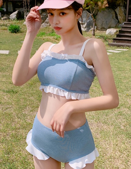 水着 タンキニ バンドゥビキニ フリル 体型カバー ジム スポーツ ブルー 夏 リゾート 海 ビーチ 温泉 プール 海水浴 水泳 バカンス 盛れる セクシー 大人可愛い 10代 20代 30代 トレンド 人気