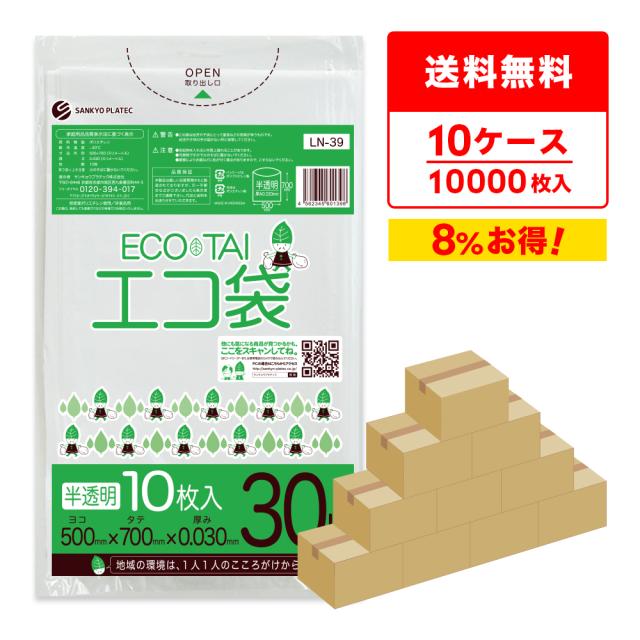 【まとめて10ケース】LN-39-10 ポリ袋 30リットル 0.030mm厚 半透明 10枚x100冊x10箱 / ゴミ袋 ごみ袋 送料無料