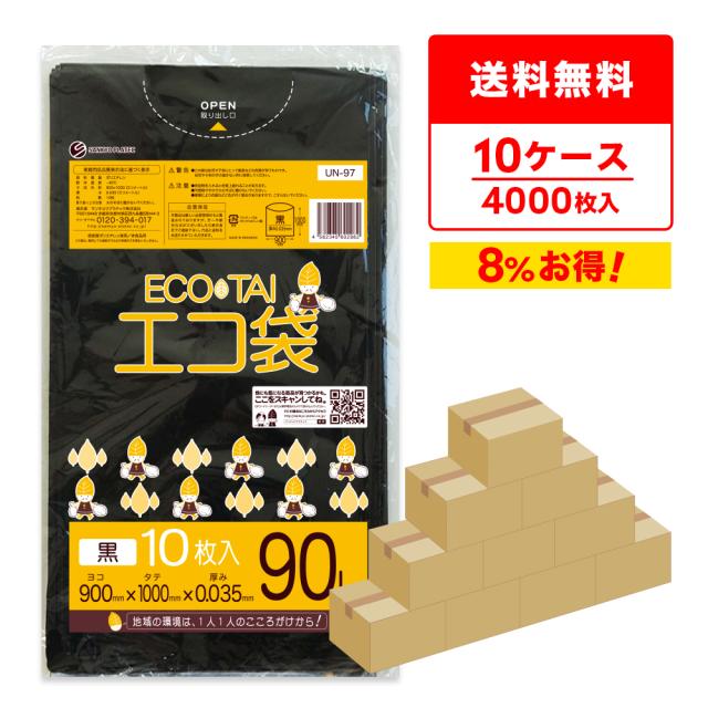 【まとめて10ケース】UN-97-10 ポリ袋 90リットル 0.035mm厚 黒 10枚x40冊x10箱 / ゴミ袋 ごみ袋 送料無料