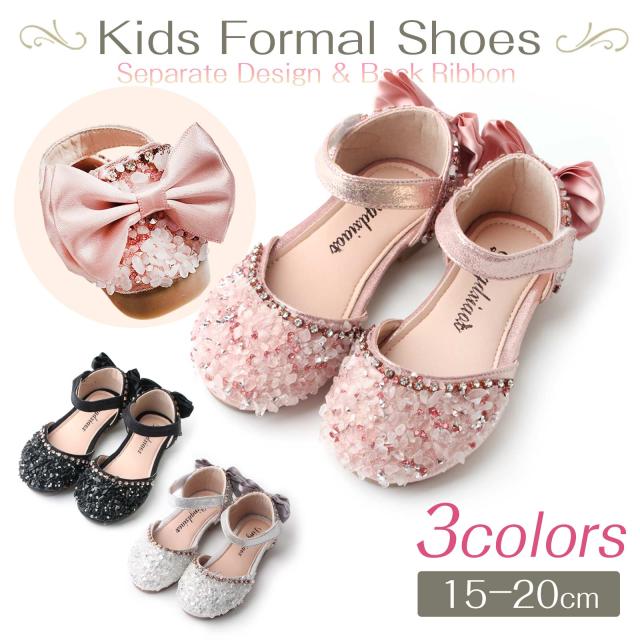 フォーマルシューズ キッズ セパレート リボン 女の子 3色選べる ビジュー 靴 発表会 結婚式 誕生日 卒園式 入学式 フォーマル キラキラ ピンク シルバー リボン