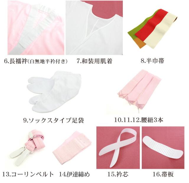 巾着・長襦袢(白無地半衿付)・和装用肌着