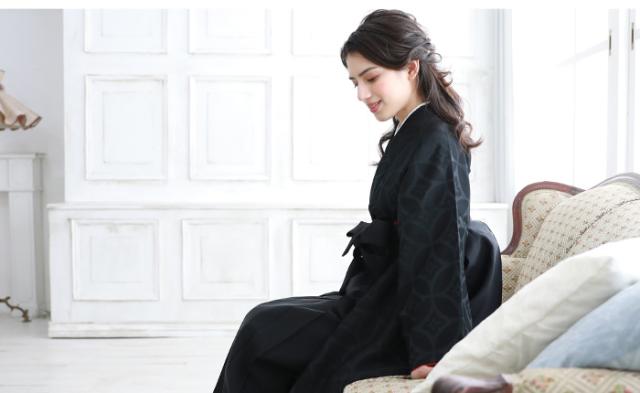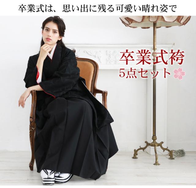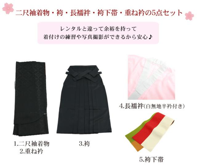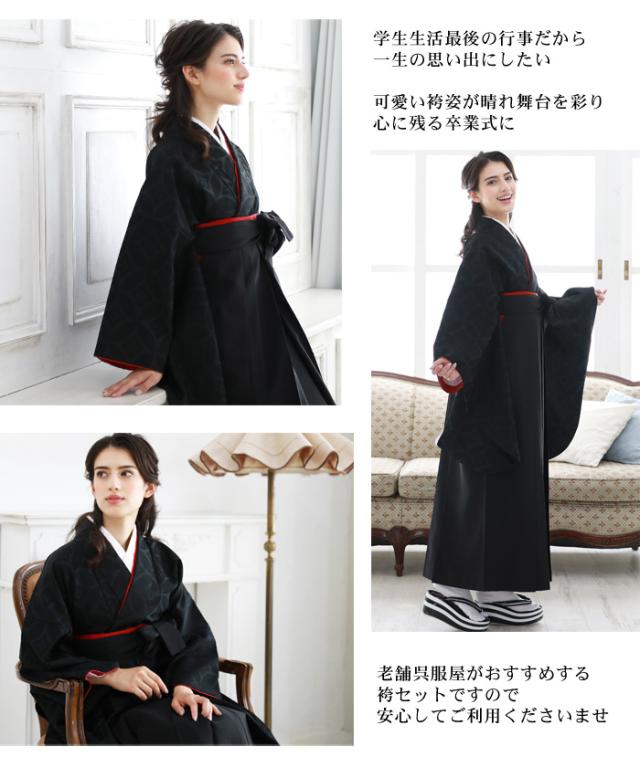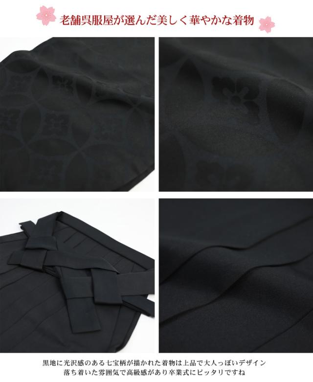 【販売】袴 セット 卒業式 女性 5点セット 購入 販売 卒業式袴セット 2尺袖着物&袴「黒地に七宝柄」袴セット 二尺袖 女 大学生 大学 上品 大人 レトロ モダン モノトーン