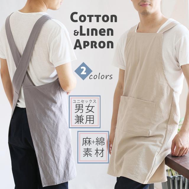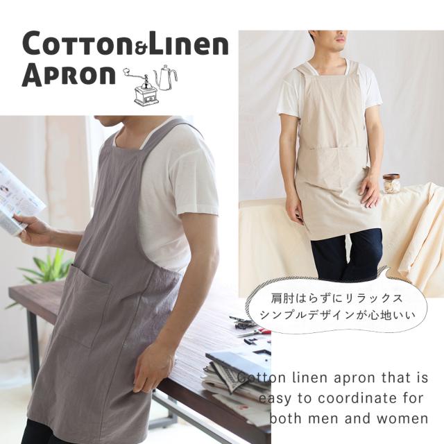エプロン ワークエプロン キッチン 家事 DIY ユニセックス 男女兼用 ナチュラル シンプル おしゃれ すっぽり ひもなし 無地 コットン リネン メンズ agesugi_snk