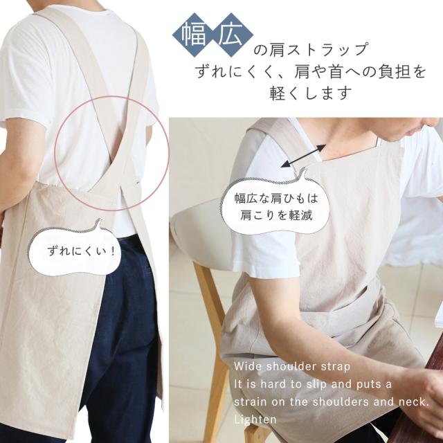 送料無料 エプロン 男女兼用 肩こり軽減 シンプル 北欧風