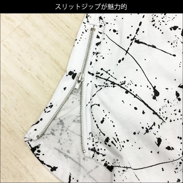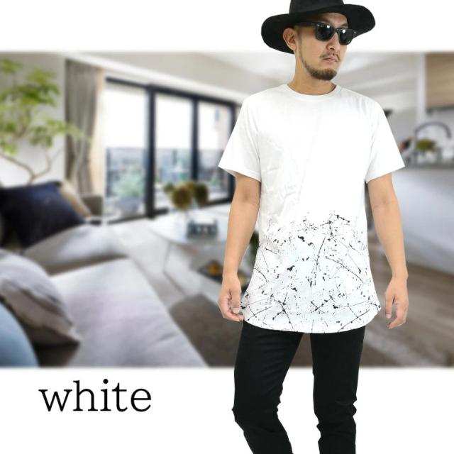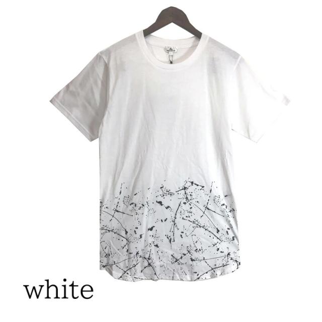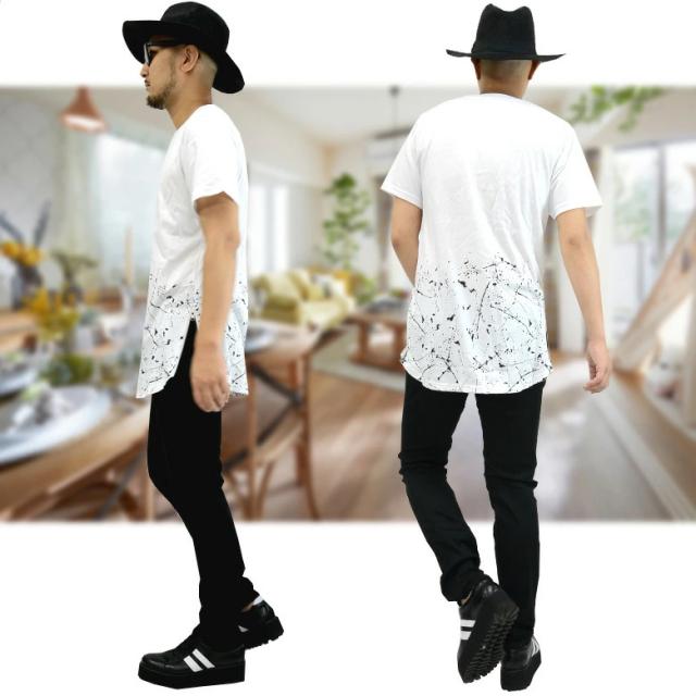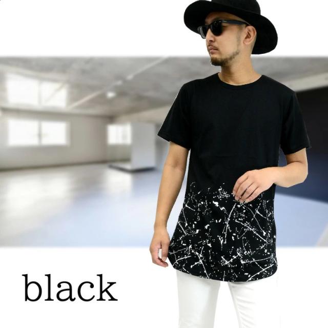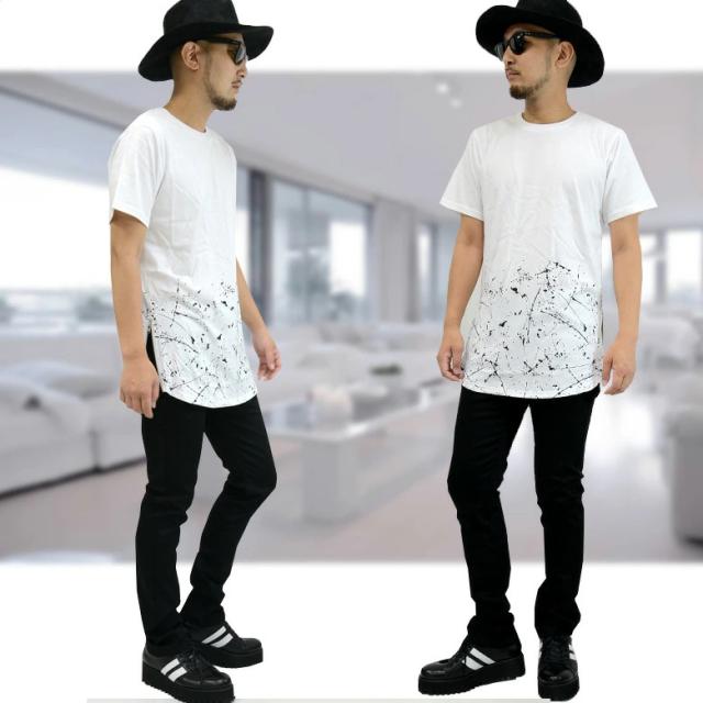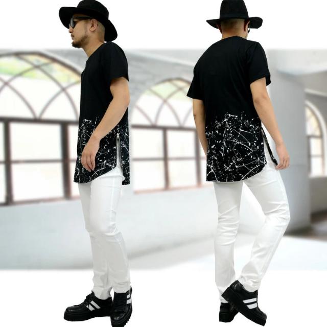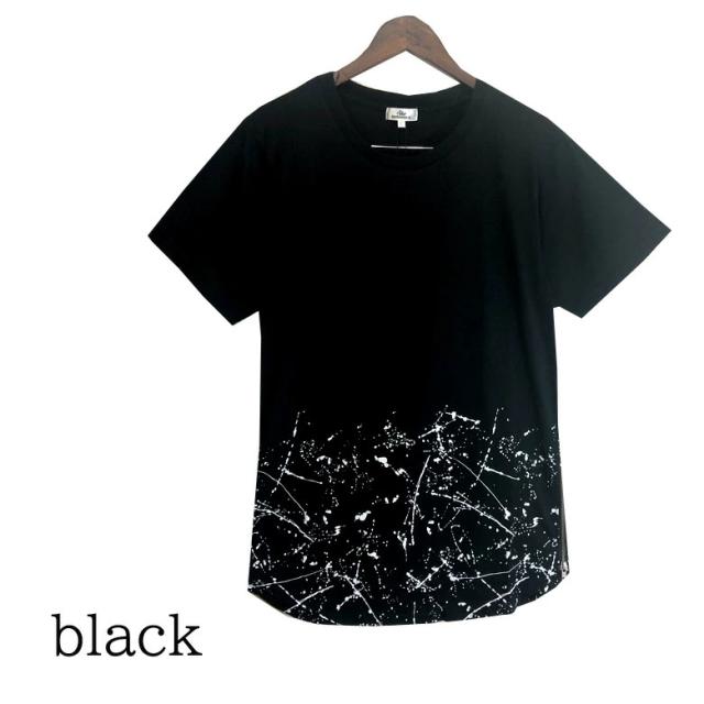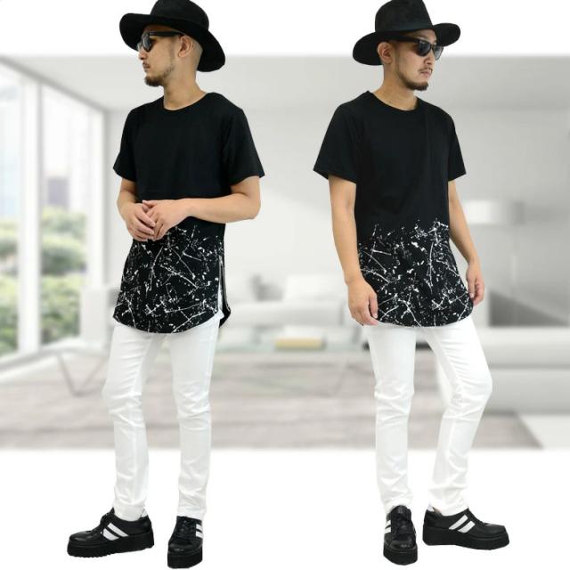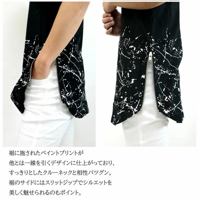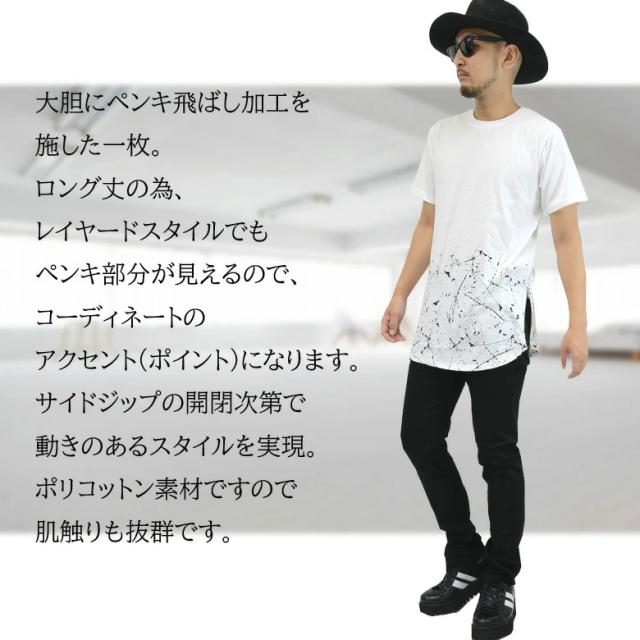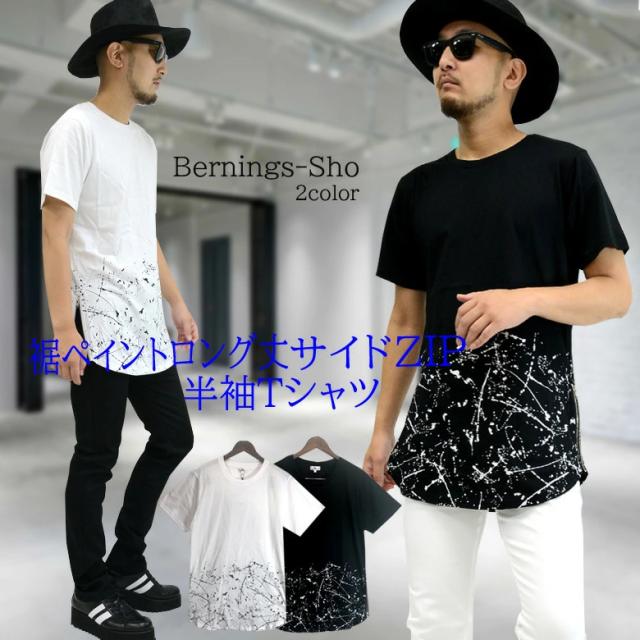 【閉店セール】裾ペイントロング丈半袖Tシャツ 3163-32c メンズ サイドジップ スリットジップ ZIP 半袖T カットソー ストレッチ 丸首 スリットジップ ZIP ロンT カットソー ストレッチ 丸首 クルーネック 丸首 Bernings-Sho