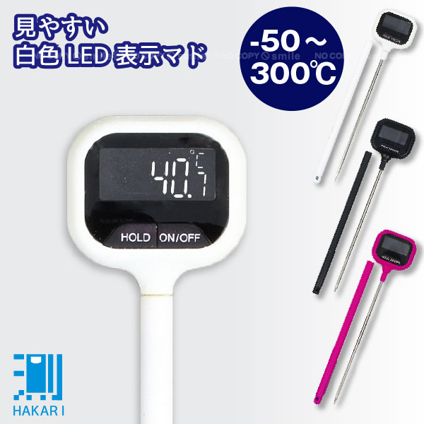 測HAKARI デジタル温度計(白色LED) /【ポスト投函送料無料】 / HAKARI デジタル 温度計 白色 LED マド 見やすい 測り 耐熱 高温 キッチン 調理 料理 油 揚げ物 揚物 湯せん 液晶 電池 電池式 / [PAL]