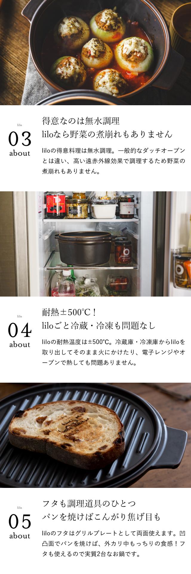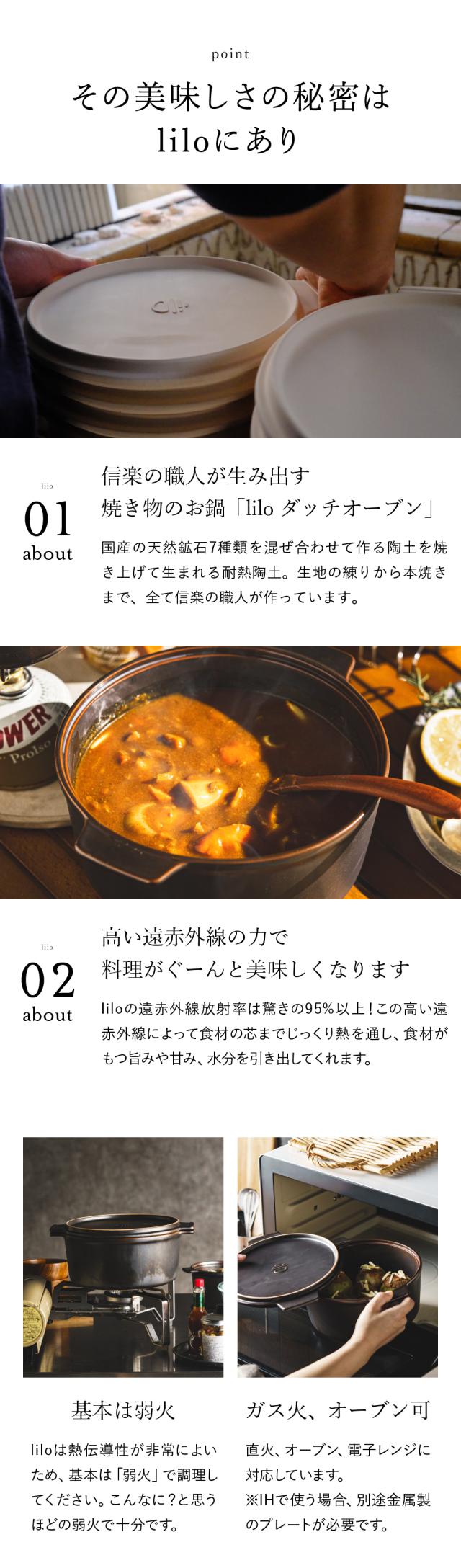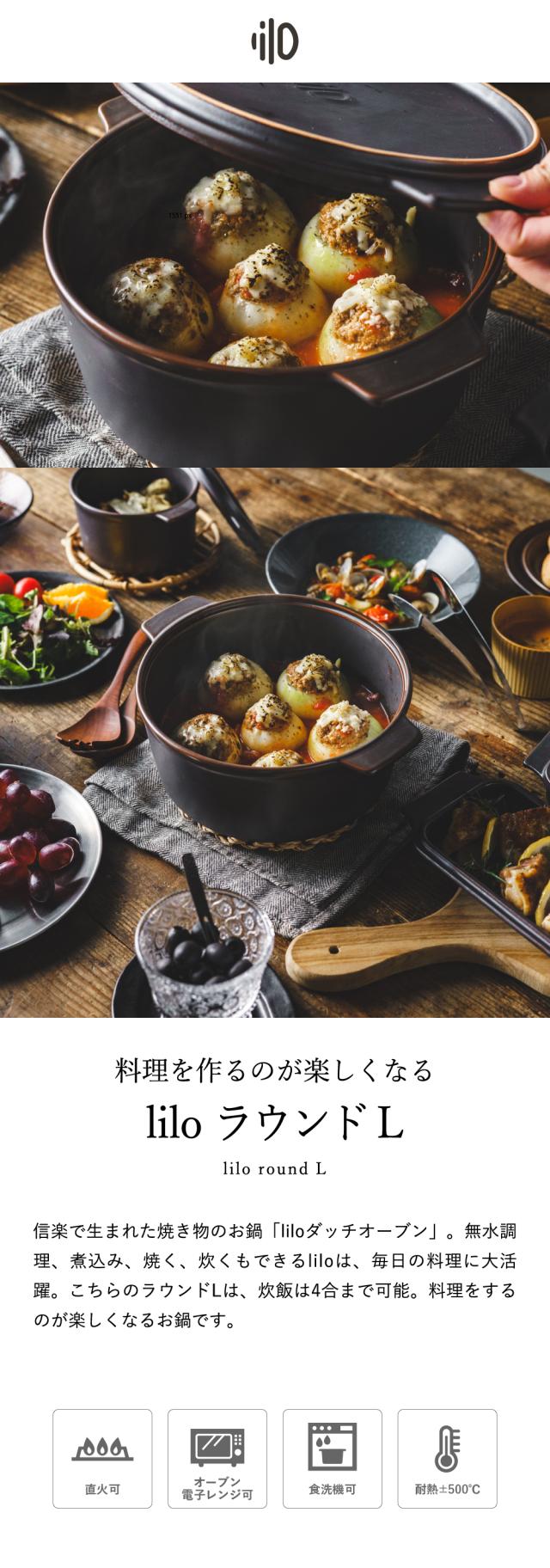 送料無料 ダッチオーブン 無水調理鍋 リロ lilo round L 22cm 軽量 無水調理 キャンプ アウトドア キャンプ ソロキャンプ 耐熱陶器 陶磁器製 直火 電子レンジ可 オーブン可 食洗機可 誕生日プレゼント
