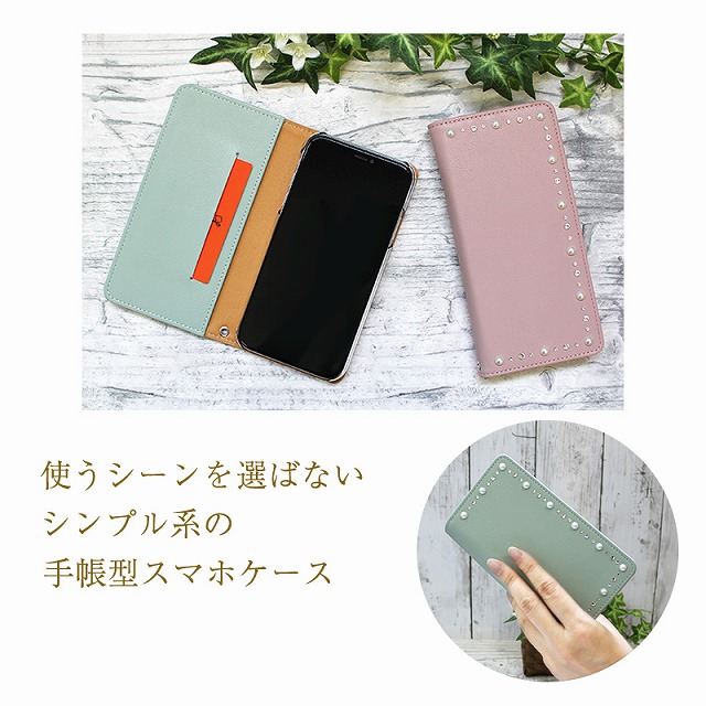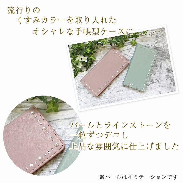 スマホケース デコ パール くすみカラー ベルトなし マグネット 右利き用 左利き用 手帳型 スマホスタンド機能 スマホカバー 携帯ケース スマホケース手帳型 AQUOS zero6 SHG04 Xperia 5 IV SOG09 BASIO4 KYV47 Galaxy A53 5G SCG15 多機種対応 送料無料