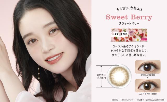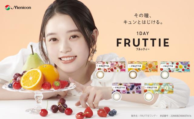 「ワンデー フルッティー」は3つのカラーが重なり合う「3トーングラデーション」により、自然になじむ「大きな瞳」を叶えるサークルレンズ。