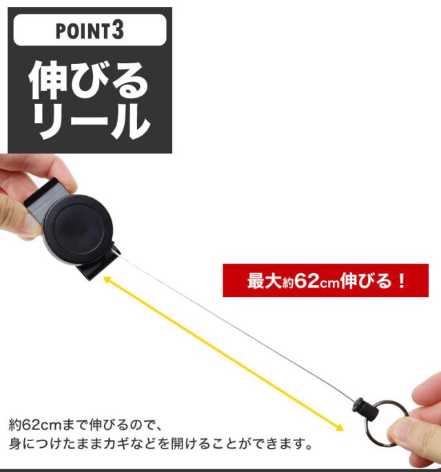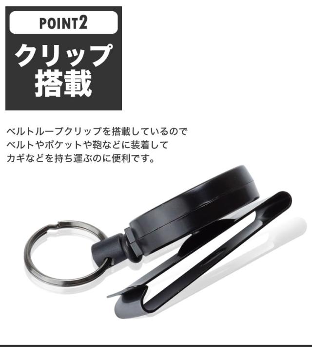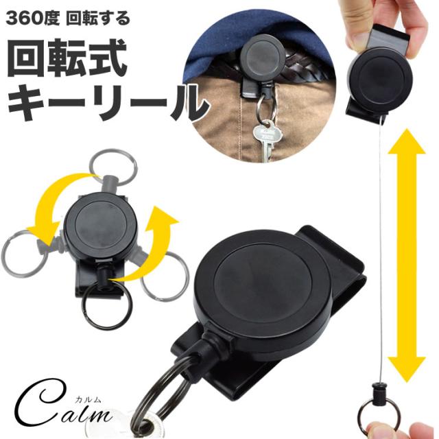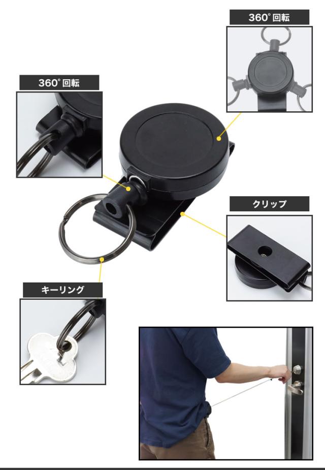 回転式 キーリール クリップ搭載 キーリング キーホルダー ホルダー リール 伸縮キーホルダー 落下防止