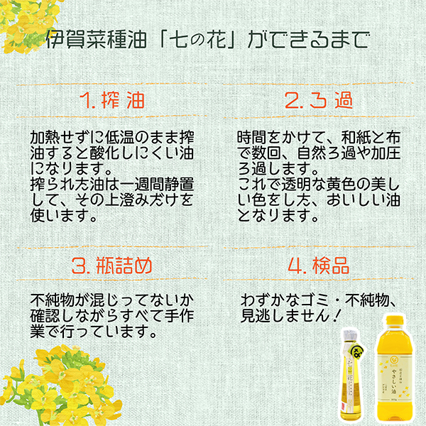 国産 伊賀産 菜種油 七の花味セレクションA ( 送料込み 沖縄・北海道を除く )