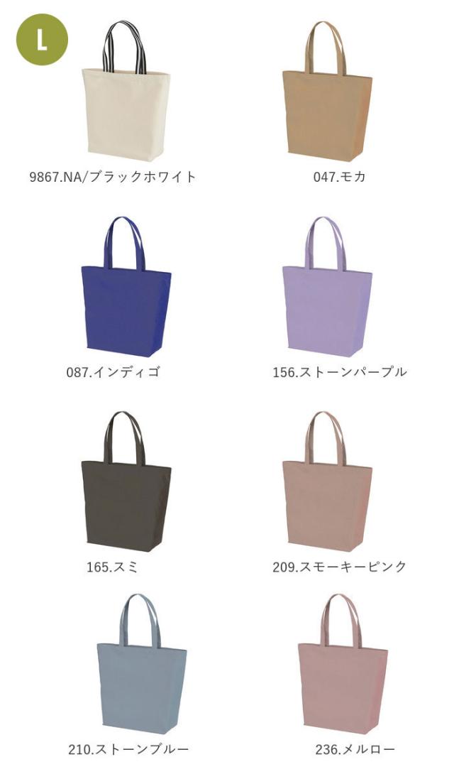 | 素材 | 綿100% ・9834.BK/ブラックホワイト・9867.NA/ブラックホワイトのみ [本体]綿100% [持ち手]ポリエスエル65%、綿35% ※9834.BK、9867.NAの2カラーでは素材の組成が異なります。 |