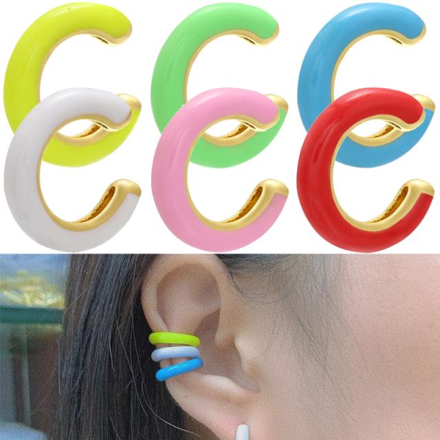 スリムエナメルカラーゴールドイヤーカフ 1個販売 金色 甲丸 白色 ホワイト 青色 ブルー グリーン 緑色 ピンク イエロー 黄色 赤色 レッド シンプル 蛍光 メンズ レディース はさむ 軟骨 イヤリング イヤークリップ 耳 フェイクピアス ノンホールピアス プレーン 金メッキ