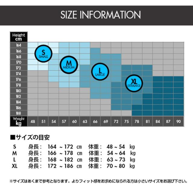 XL 身長:172〜186cm 体重:70〜80kg