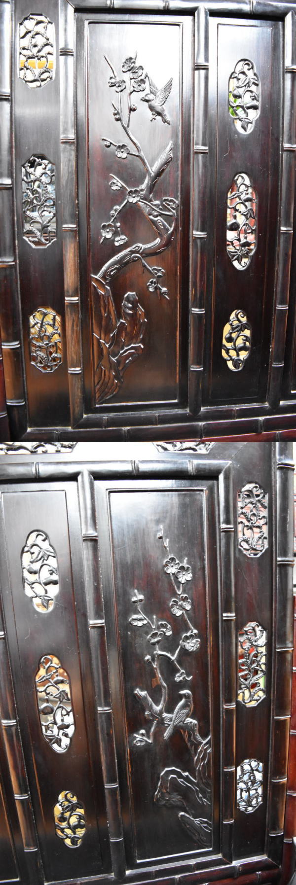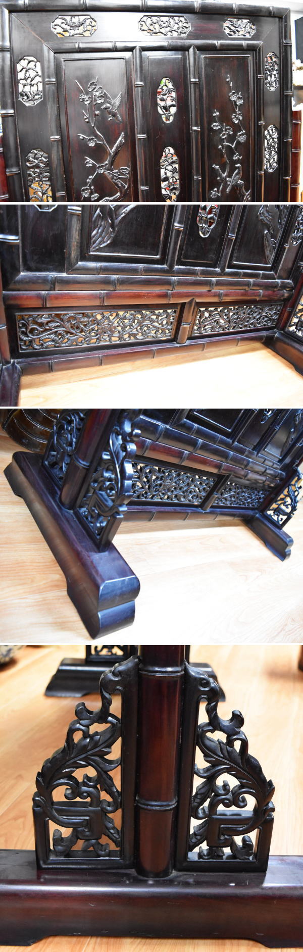 【送料無料】中国民国時代 微細花鳥透かし彫紫檀屏風 古唐木 竹節 一点もの 年代物 時代物 美品 稀少 古美術 唐物 高級 骨董 古玩 (旧家蔵出し) 威龍彩雲通販