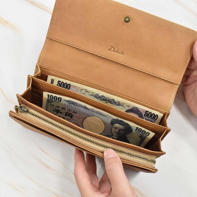 小銭入れはL字ファスナーになっているため、大きく開き、見やすくなっています。また、内部が3つに分かれているので、仕分けも簡単にできます。