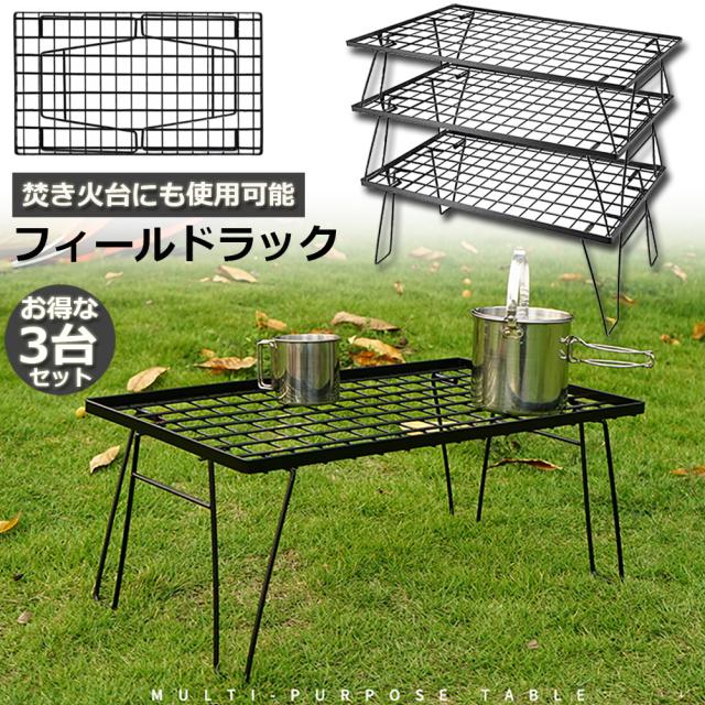 フィールドラック キャンプ 用品 3台セット折りたたみ ラック メッシュ アウトドア テーブル グッズ 調理台 折りたたみ ローテーブル ミニテーブル コンパクト 持ち運び BBQ アウトドア キャンプ