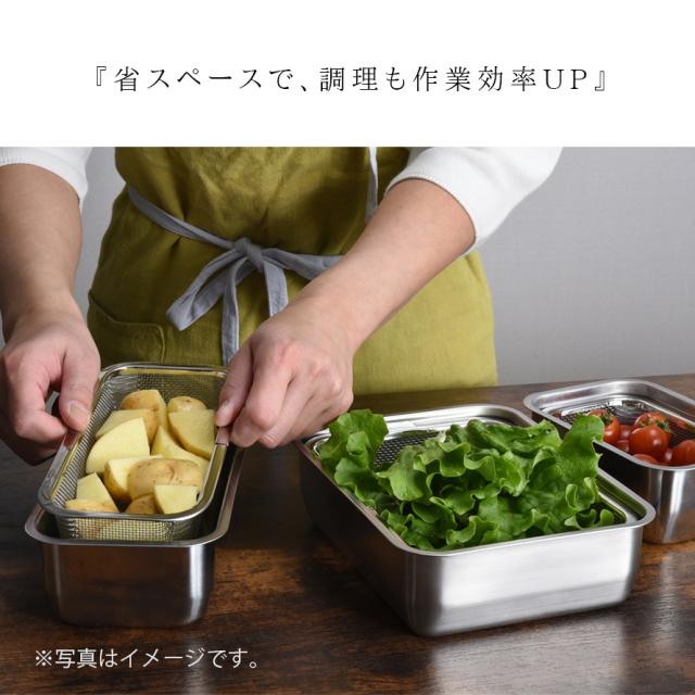 四角いから料理の下ごしらえが捗る!収納にも便利!角ザル1/2サイズです。
