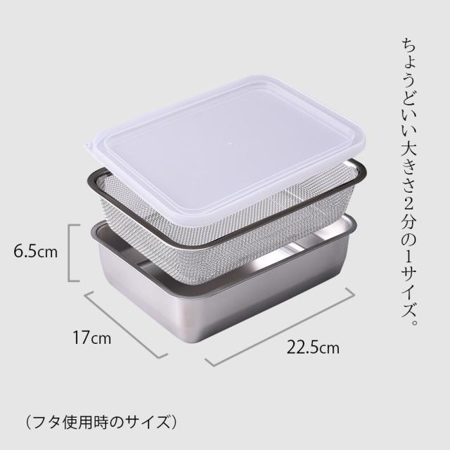 燕三条 ステンレスバット 蓋付き 保存容器 バット ざる ザル ステンレス セット 日本製 角型 キッチン 調理器具 お料理はかどる角バット・角ザルセット 1/2サイズ