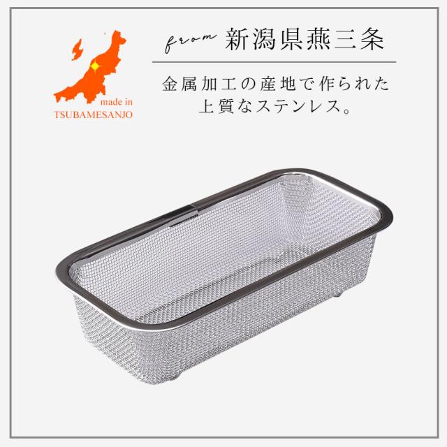 燕三条,ステンレス,ざる,ザル,網,脚付き,四角,角型,スクエア,水切り,湯切り,日本製,高級,高級感,調理器具,調理道具,キッチンツール,キッチン,台所,調理,料理,家事,キッチン用品,キッチン雑貨,台所用品,キッチンアイテム,キッチングッズ,時短,アイデア,便利グッズ,おすすめ,オススメ,人気,清潔,衛生的,汚れが落ちやすい,洗いやすい,乾きやすい,錆びにくい,サビにくい,丈夫,上質,高品質