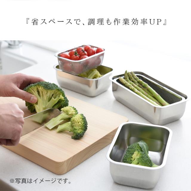 四角いから料理の下ごしらえが捗る!収納にも便利!角ザル1/3サイズです。