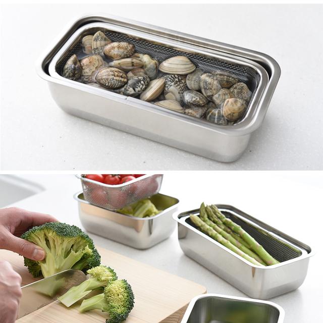 燕三条,ステンレス,バット,ステンレスバット,保存容器,セット,フードコンテナ,ストッカー,冷蔵庫,保存,容器,入れ物,四角,角型,スクエア,揚げ物,フタ付き,蓋付き,ふた付き,フタ,蓋,ふた,すっきり,重ねられる,スタッキング,ざる,ザル,網,脚付き,水切り,湯切り,日本製,高級,高級感,調理器具,調理道具,キッチンツール,キッチン,台所,調理,料理,家事,キッチン用品,キッチン雑貨,台所用品,キッチンアイテム,キッチングッズ,時短,アイデア,便利グッズ,おすすめ,オススメ,人気,清潔,衛生的,汚れが落ちやすい,洗いやすい,乾きやすい,錆びにくい,サビにくい,丈夫,上質,高品質