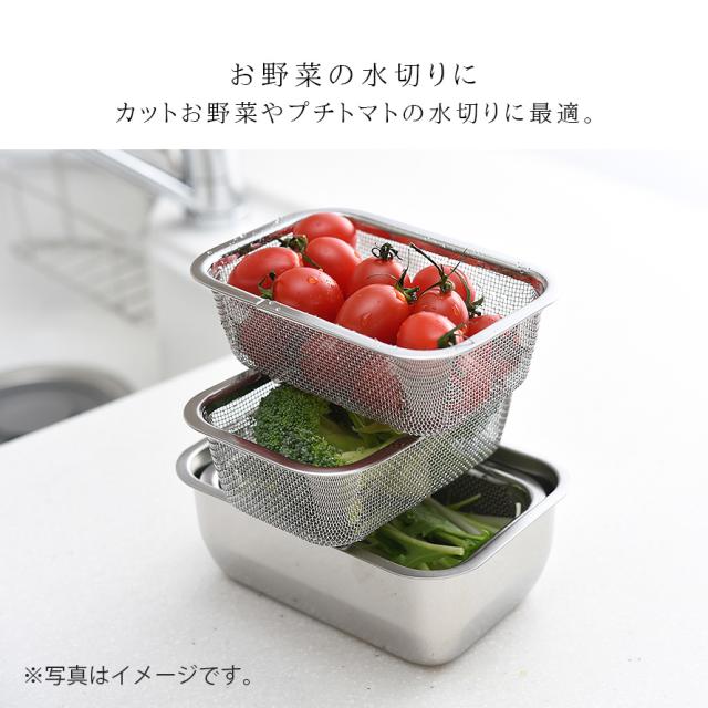 四角いから料理の下ごしらえが捗る!収納にも便利!角ザル1/4サイズです。