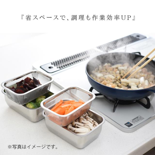 燕三条,ステンレス,ざる,ザル,網,脚付き,四角,角型,スクエア,水切り,湯切り,日本製,高級,高級感,調理器具,調理道具,キッチンツール,キッチン,台所,調理,料理,家事,キッチン用品,キッチン雑貨,台所用品,キッチンアイテム,キッチングッズ,時短,アイデア,便利グッズ,おすすめ,オススメ,人気,清潔,衛生的,汚れが落ちやすい,洗いやすい,乾きやすい,錆びにくい,サビにくい,丈夫,上質,高品質