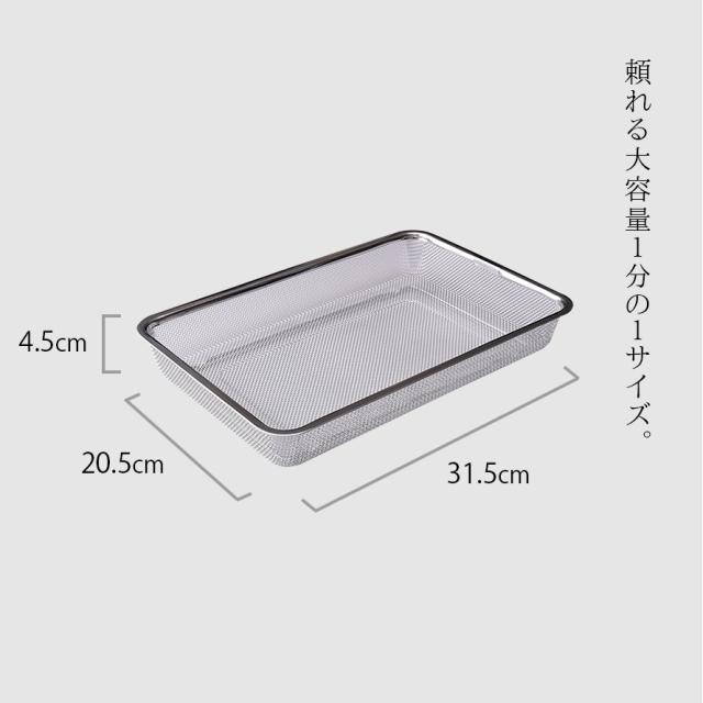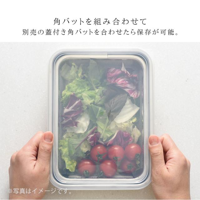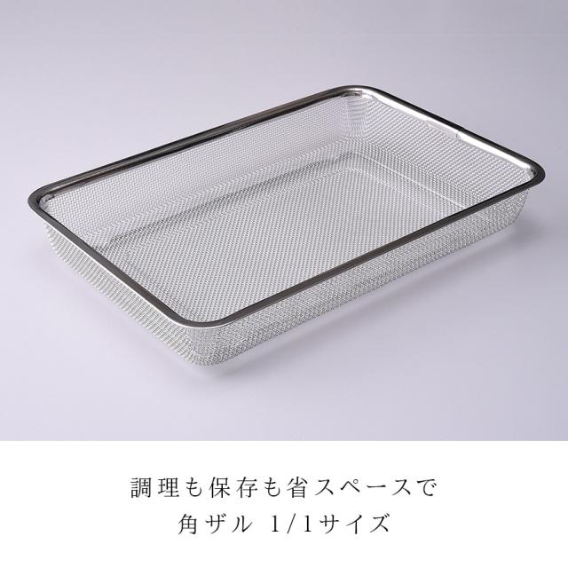 四角いから料理の下ごしらえが捗る!収納にも便利!一枚持っていると頼りになる、角ザル1/1サイズ。