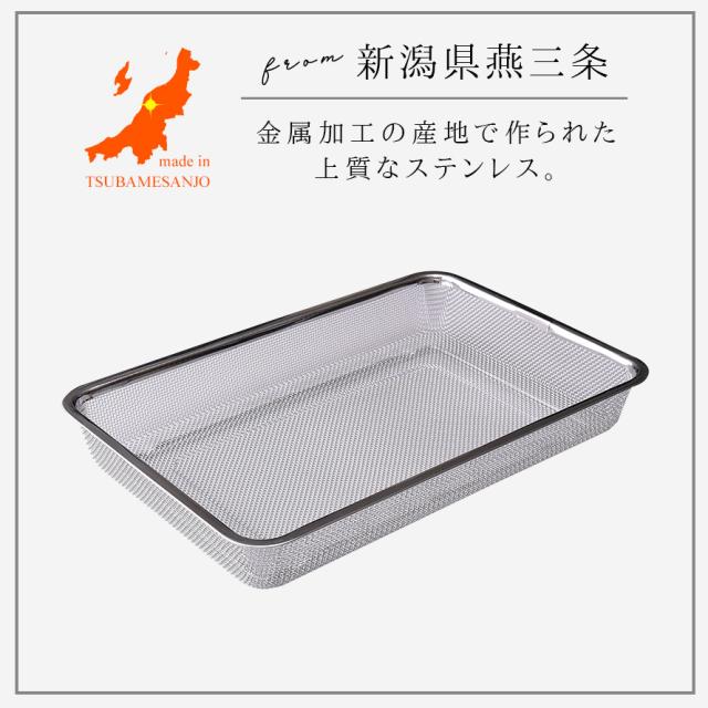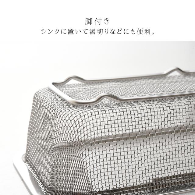 燕三条,ステンレス,ざる,ザル,網,脚付き,四角,角型,スクエア,水切り,湯切り,日本製,高級,高級感,調理器具,調理道具,キッチンツール,キッチン,台所,調理,料理,家事,キッチン用品,キッチン雑貨,台所用品,キッチンアイテム,キッチングッズ,時短,アイデア,便利グッズ,おすすめ,オススメ,人気,清潔,衛生的,汚れが落ちやすい,洗いやすい,乾きやすい,錆びにくい,サビにくい,丈夫,上質,高品質