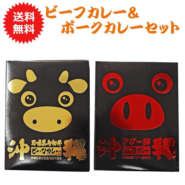 ご当地レトルトカレー あぐー豚ポークカレー・石垣黒毛和牛ビーフカレーセット メール便送料無料 ナンポー 沖縄土産