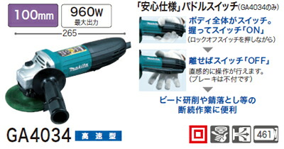 [税込新品]マキタ ディスクグラインダーGA4034「安心仕様」パドルスイッチ【ポイント消化にどうぞ】 マキタ 電源コードタイプオフィスに工場に職人さんにDIY女子に