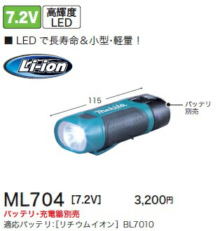 [税込新品]マキタ7.2VフラッシュライトML704バッテリ・充電器別売【ポイント消化にどうぞ】】 マキタオフィスに工場に職人さんにDIY女子に