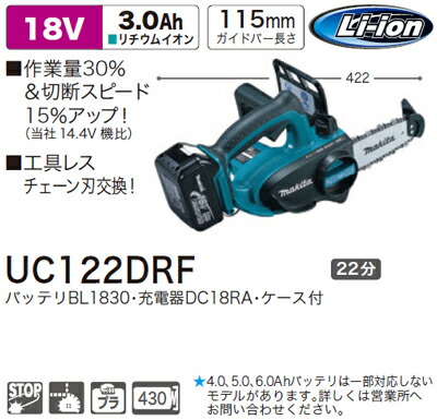 [税込新品]マキタ充電式チェンソー チェーンソーUC122DRF 、充電器(DC18VV)【ポイント消化にどうぞ】 マキタ 充電タイプオフィスに工場に職人さんにDIY女子に