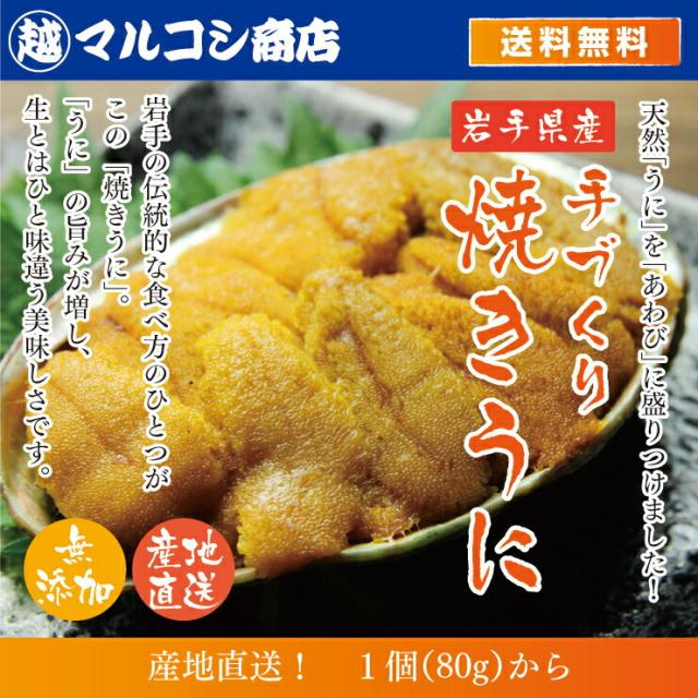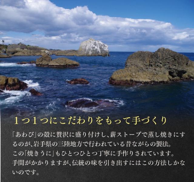 焼きウニ 80g 1個 いわて三陸無添加 高級あわびの貝盛り 新鮮なうにだけを厳選して手づくりで蒸し焼きにしました【アワビの貝のウニ焼き】 うにの貝焼き うに 国産 貝焼き 焼きウニ 貝焼