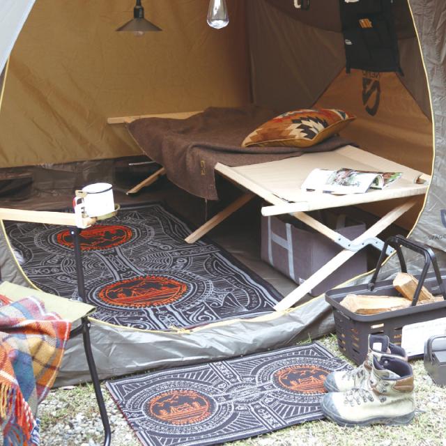 | UV加工糸を使用した機能性の高いラグ。 紫外線による退色劣化に強く、汚れたら洗濯機で丸洗いできるアウトドアユースのマットです。 テントサイトの入口で靴の脱ぎ履き時のマットとして、玄関マットとしてインテリアのアクセントにもなります。 |