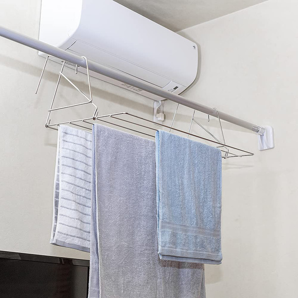 物干し竿に掛けて使えます。バスタオル1枚分の幅で最大7枚掛けられるので、いつも場所を取るバスタオルがたっぷり干せます。